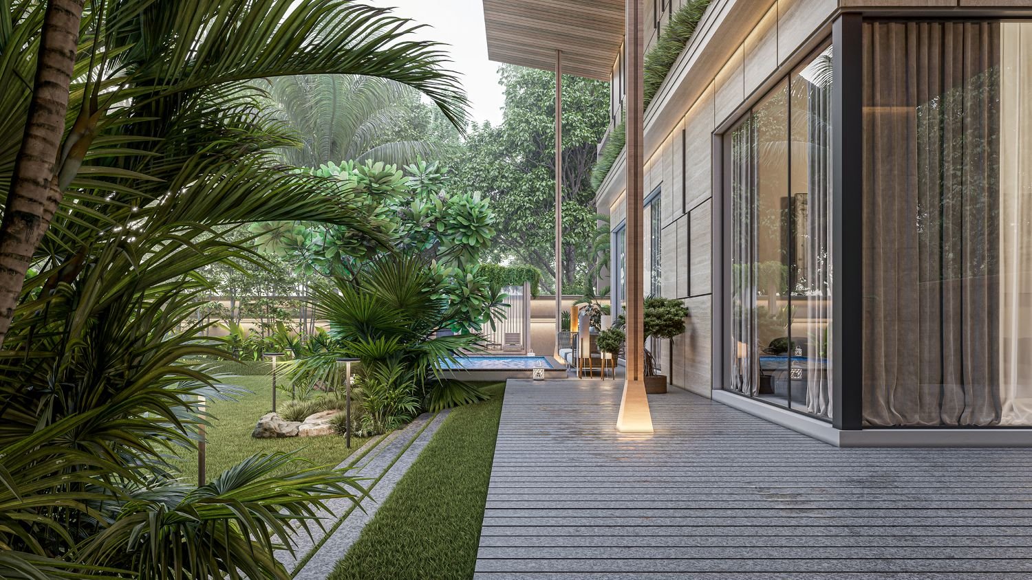 Bungalow Exterior Garden View 3D Render